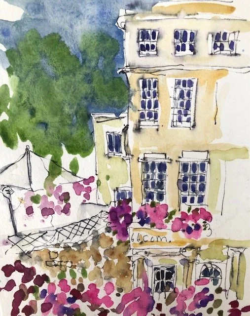 Using waterbased pen & watercolour, I will help you with the concepts of observation, line, wash & the use of text to enhance your images. Concentrating on the idea of the essence of place, you will enjoy learning to be loose & free.