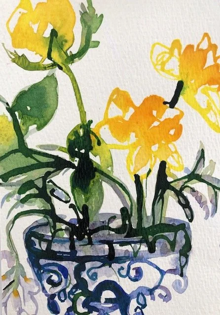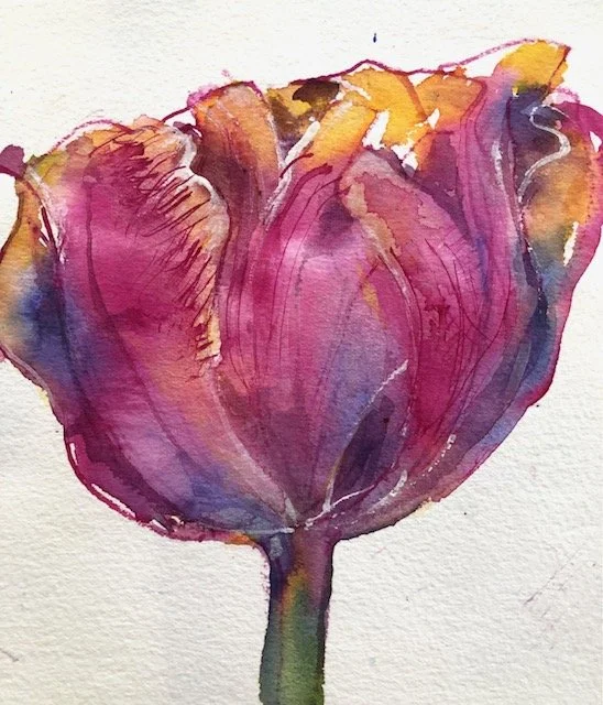 Pigmented water-based inks produce strong colour. With water they act like watercolours but with vibrant colour. Using these inks, on watercolour pap with a variety of techniques you will create strong expressive images sourced from still-life groupings of flowers, plants and objects.